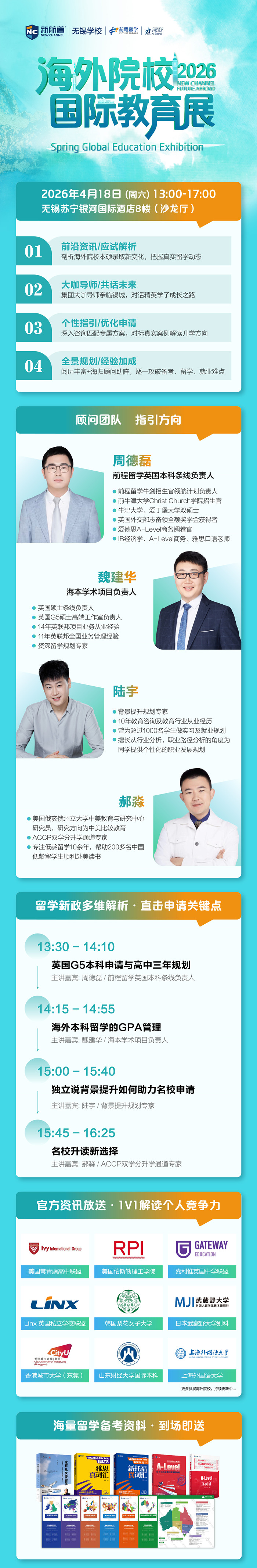 无锡新航道 > 热门新闻 > 海外院校2026国际教育展(4月18日)