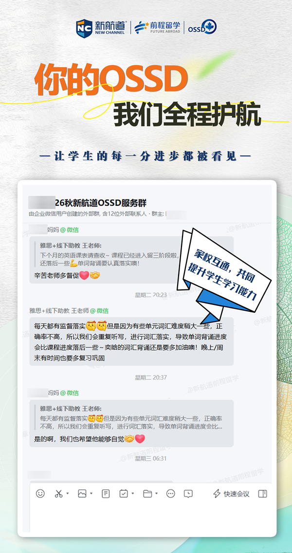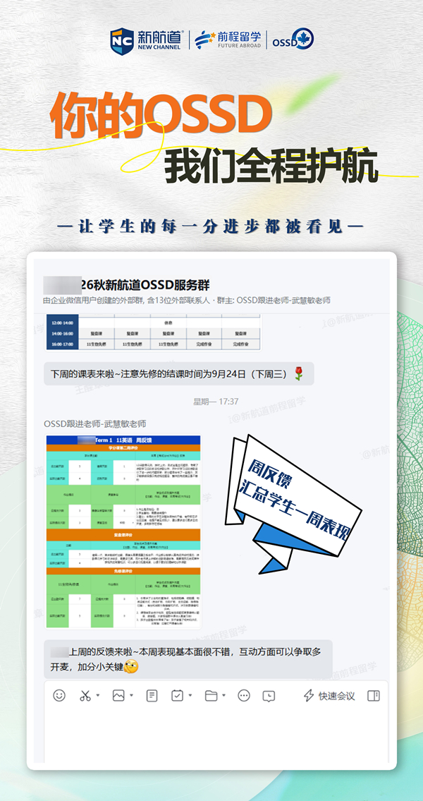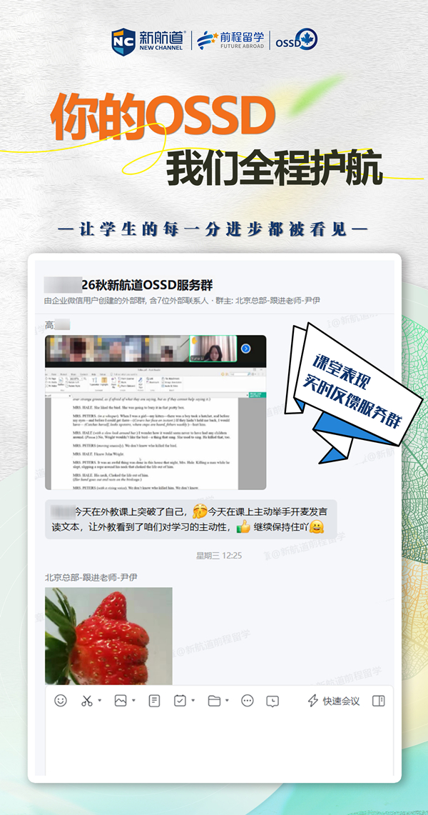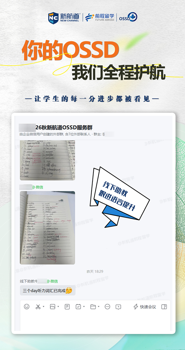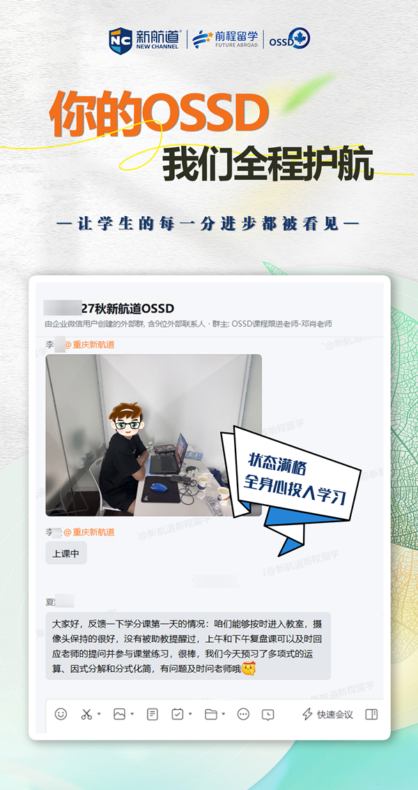 新航道OSSD,全程护航学子成长从课前准备→课堂表现→课后作业紧盯每个细节,严谨落实每一步在这里,每一分努力都被看见,每一次突破都获喝彩!