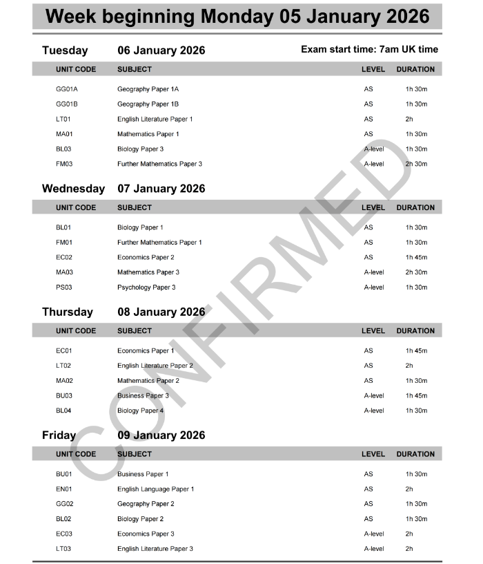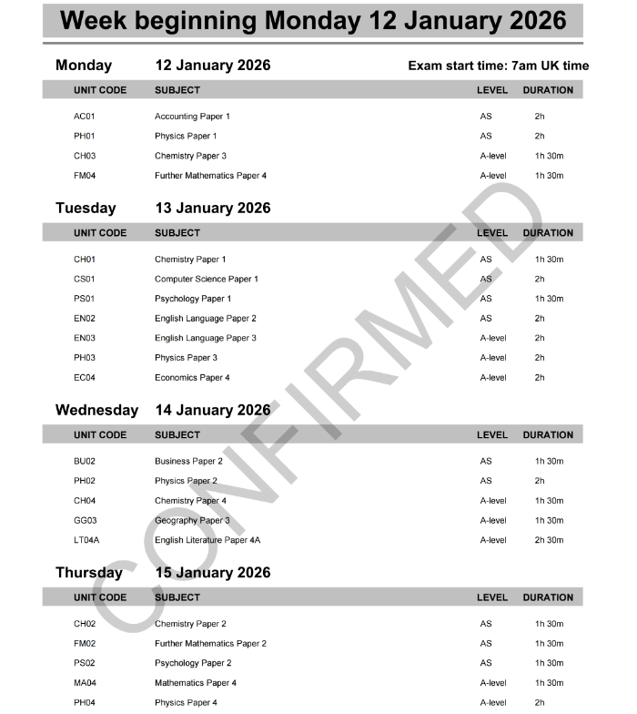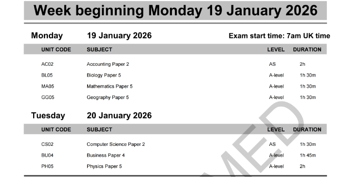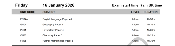 爱德思考试局(Edexcel):IAL和IG成绩于2026年1月22日公布。