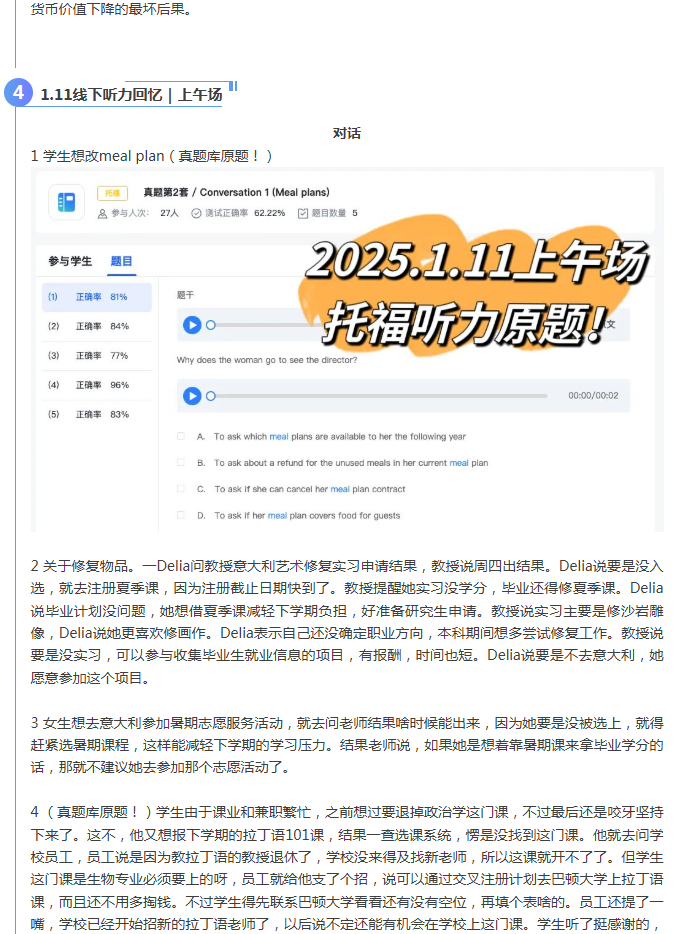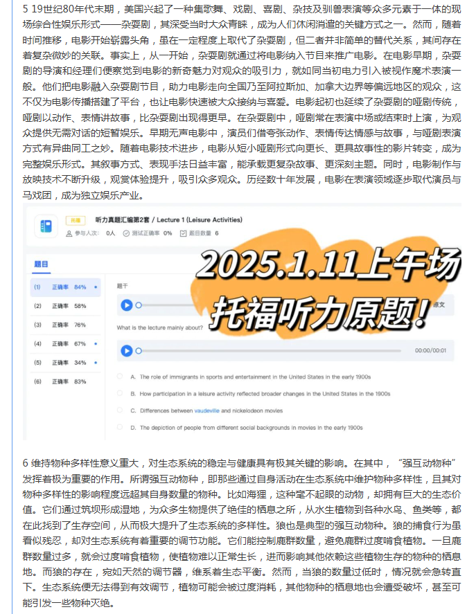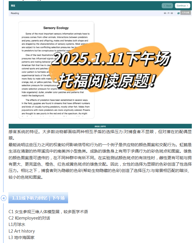 首页>托福>托福机经>新航道2025年1月11日托福考试机经