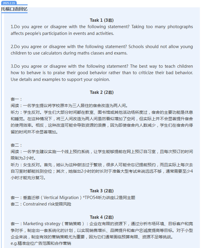 首页>托福>托福机经>新航道2025年2月15日托福考试机经