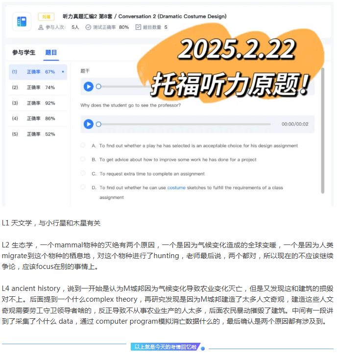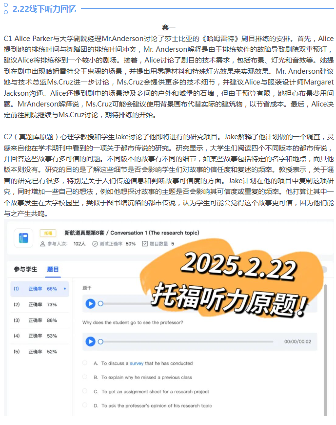 首页>托福>托福机经>新航道2025年2月22日托福考试机经