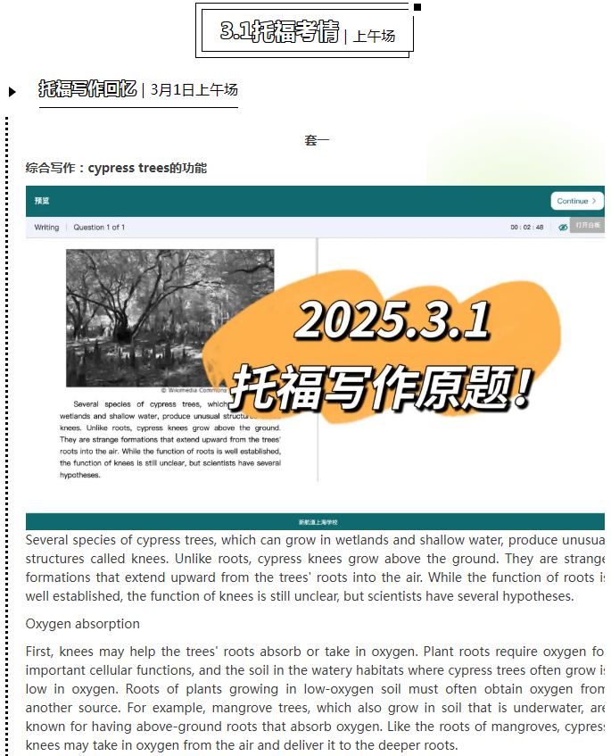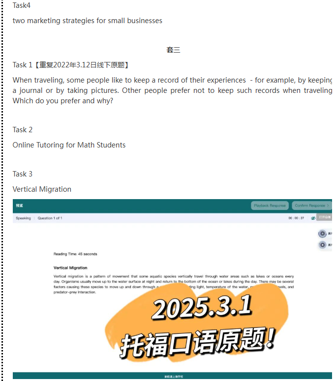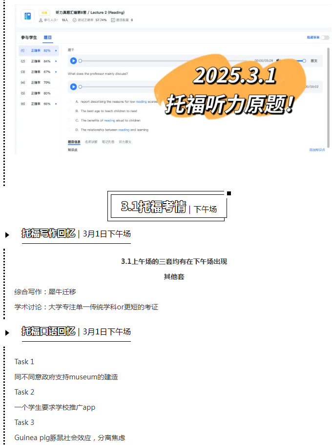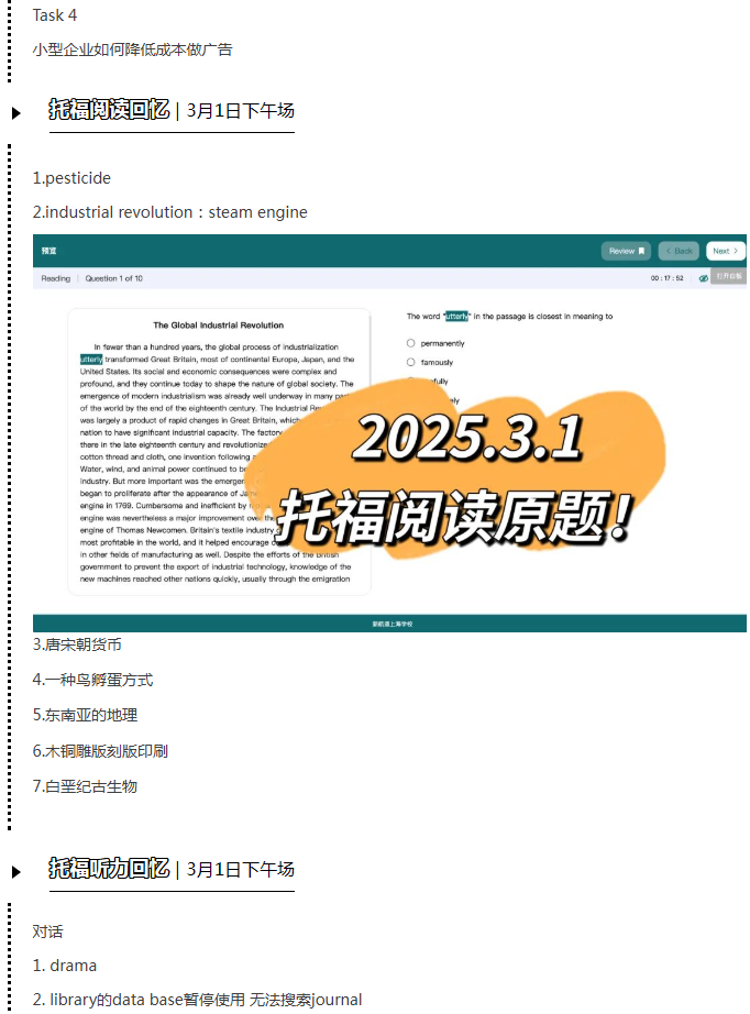 首页>托福>托福机经>新航道2025年3月1日托福考试机经
