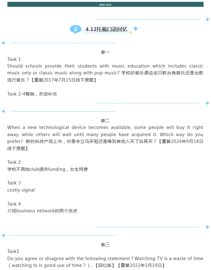 首页>托福>托福机经>新航道2025年4月12日托福考试机经