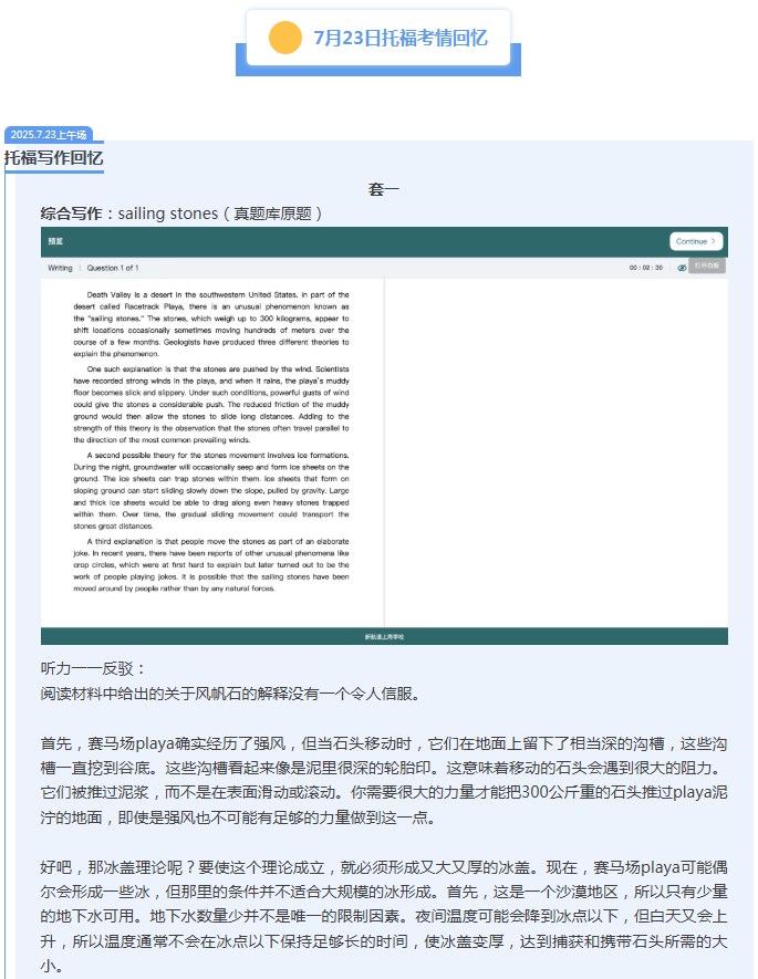 首页>托福>托福机经>新航道2025年7月23日托福考试机经