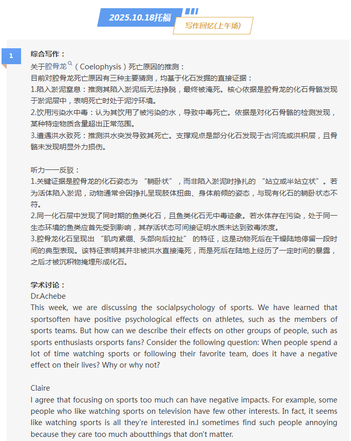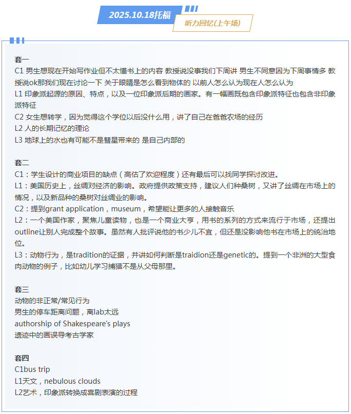 首页>托福>托福机经>新航道2025年10月18日托福考试机经