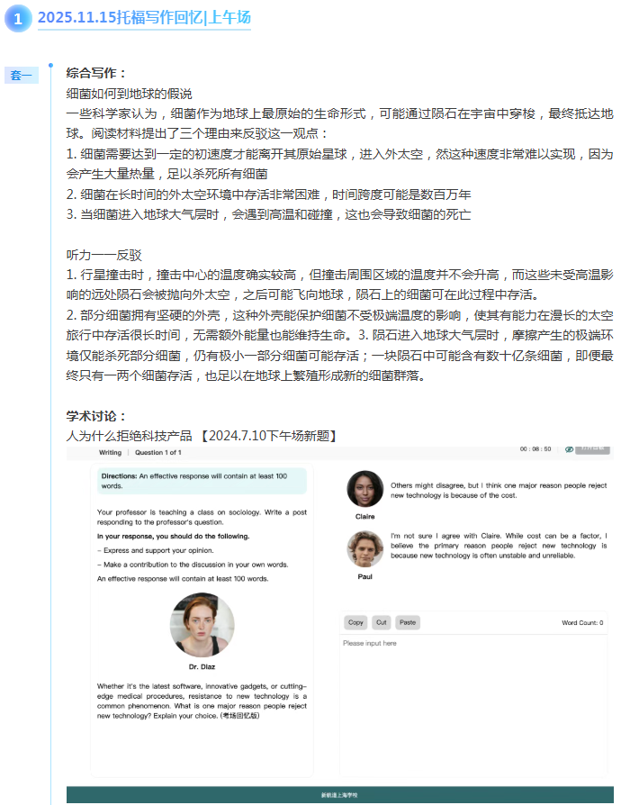 首页>托福>托福机经>新航道2025年11月15日托福考试机经