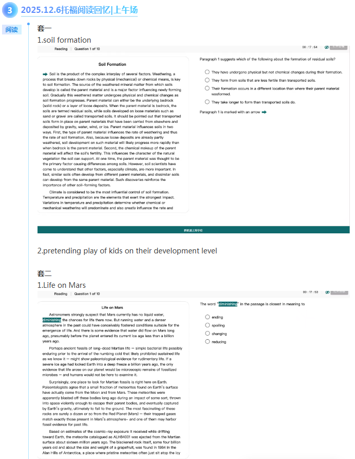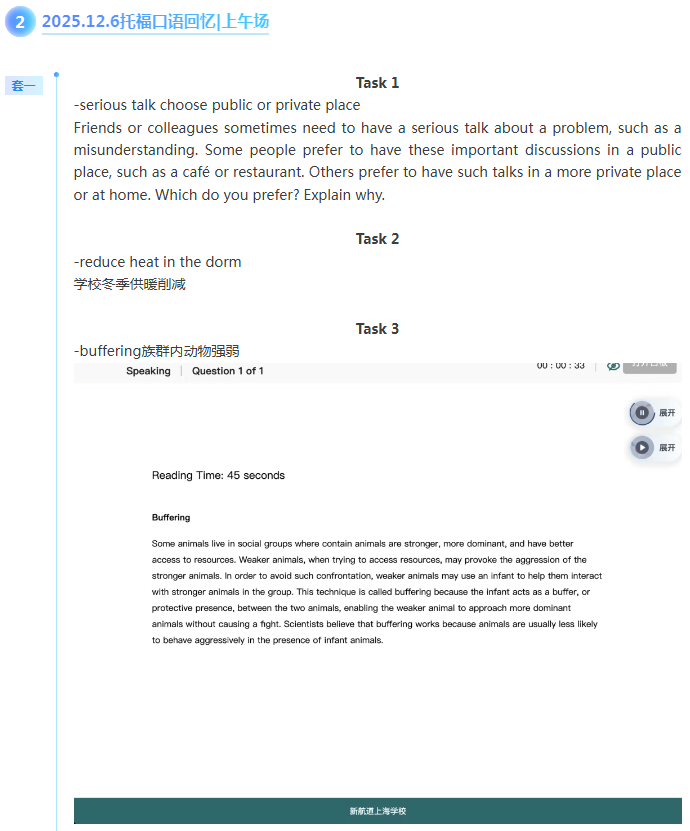 首页>托福>托福机经>新航道2025年12月6日托福考试机经