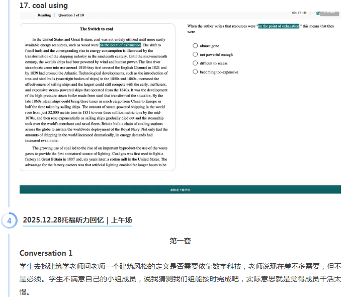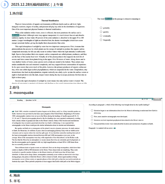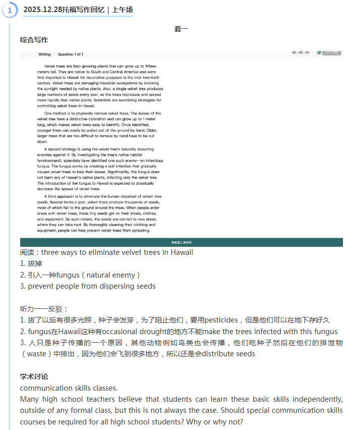 首页>托福>托福机经>新航道2025年12月28日托福考试机经