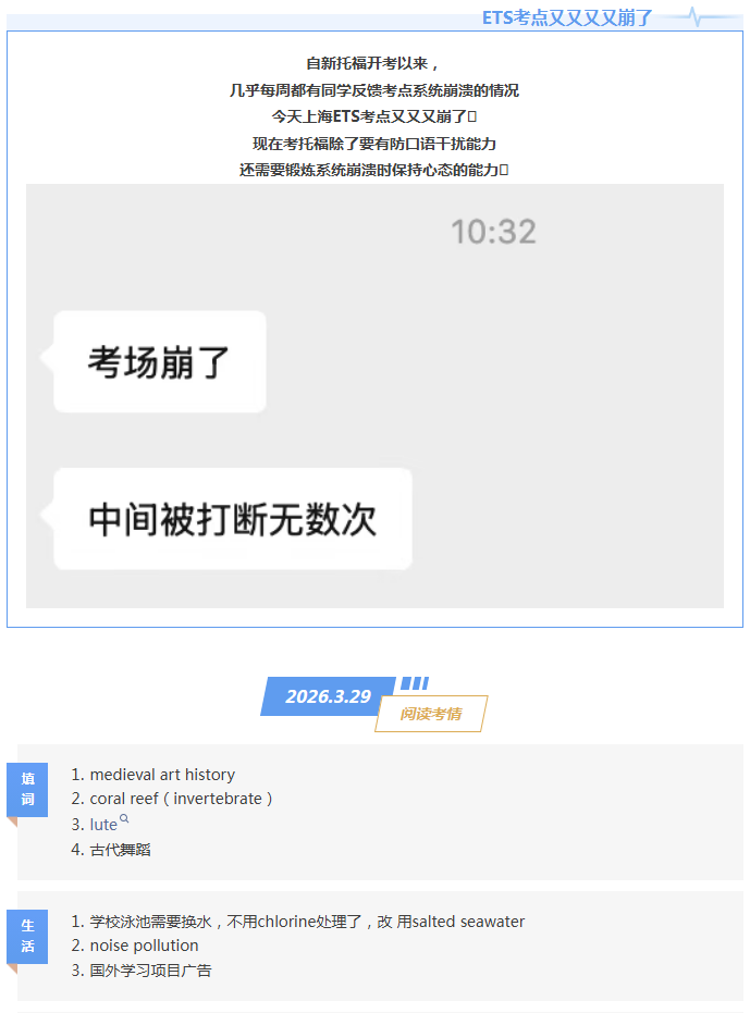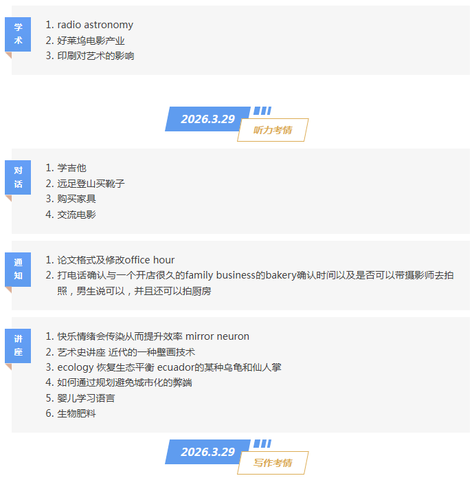 首页>托福>托福机经>新航道2026年3月29日托福考试机经